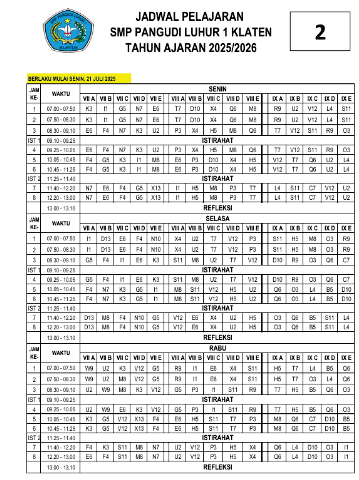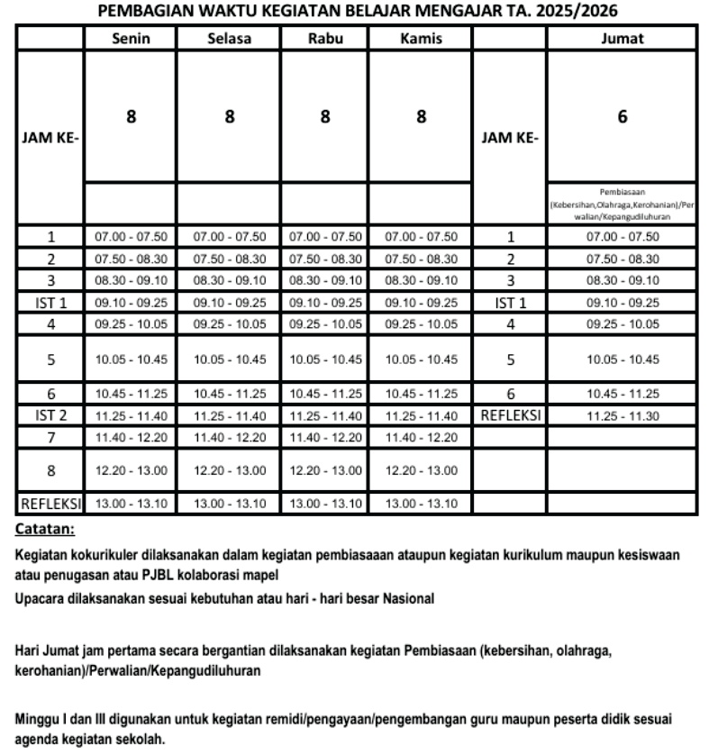 PEMBAGIAN WAKTU KEGIATAN BELAJAR MENGAJAR TA. 2025/2026