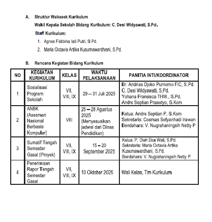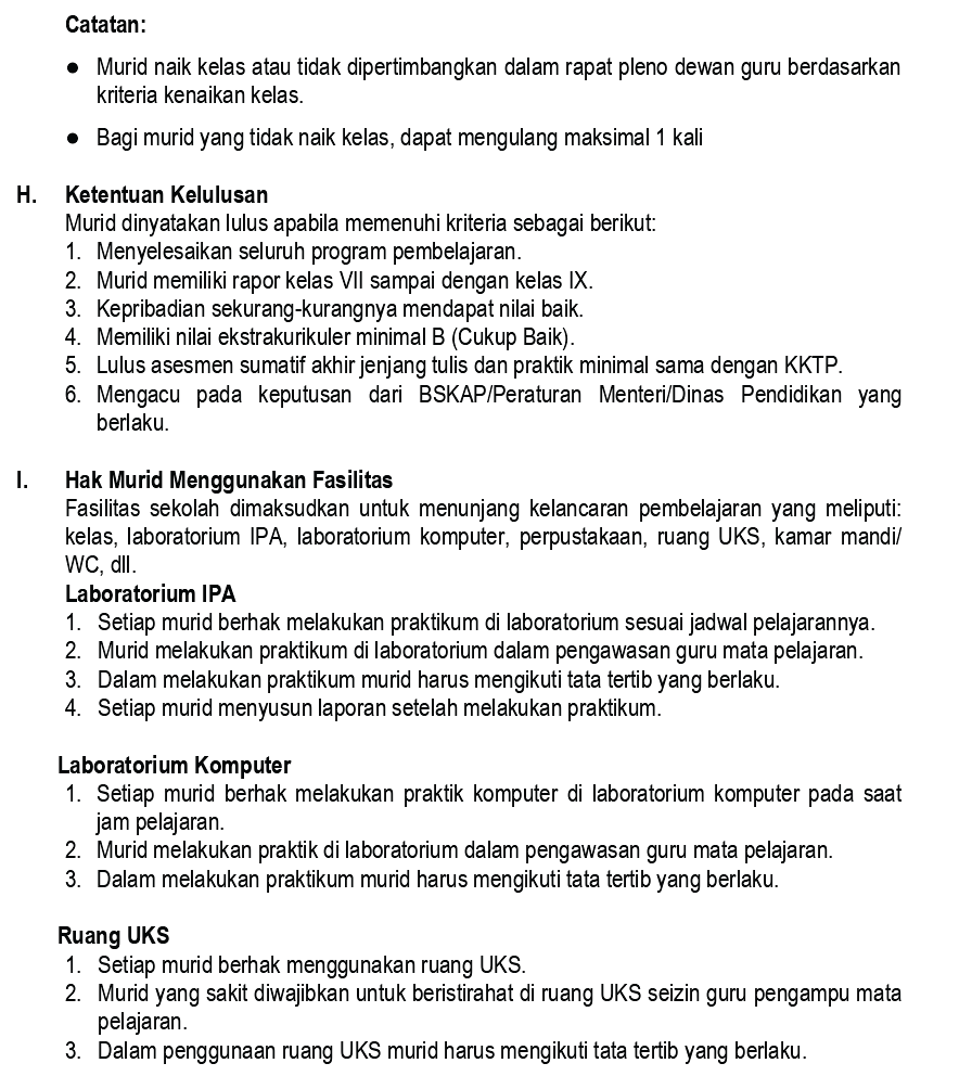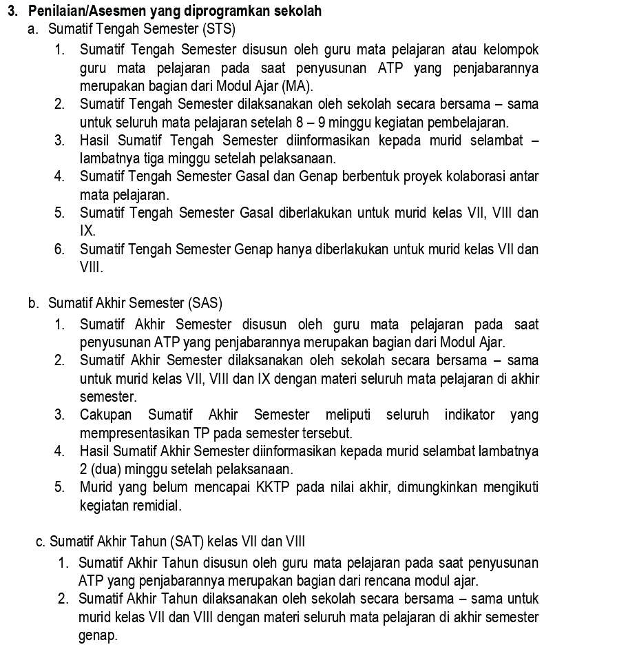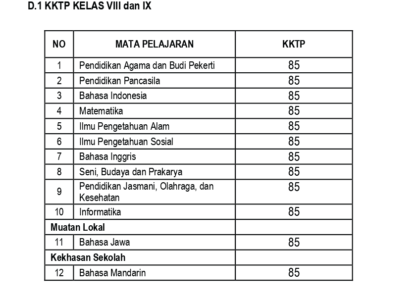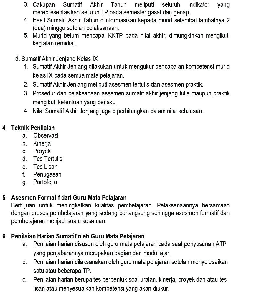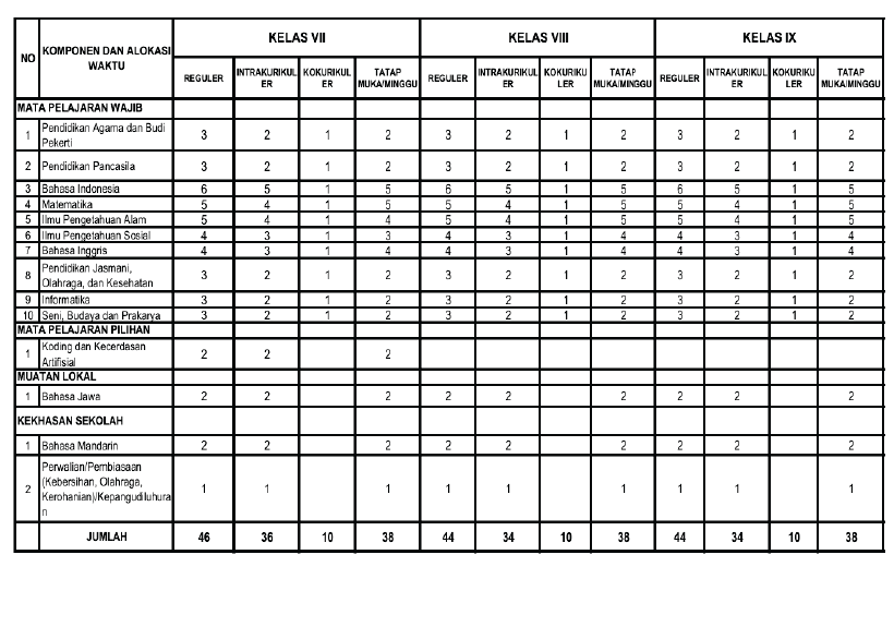 Struktur Kurikulum Kelas VII, VIII, dan IX