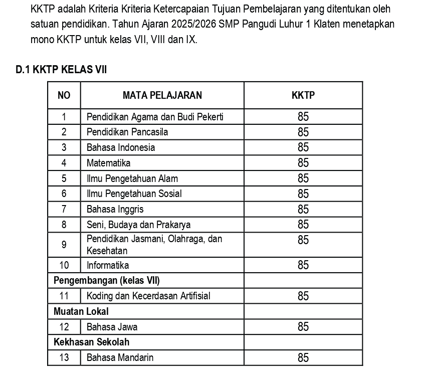 Kriteria Ketercapaian Tujuan Pembelajaran