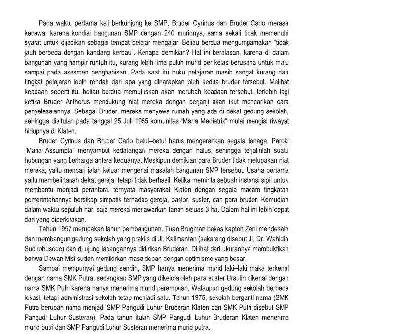 Sejarah Berdirinya SMP Pangudi Luhur 1 Klaten